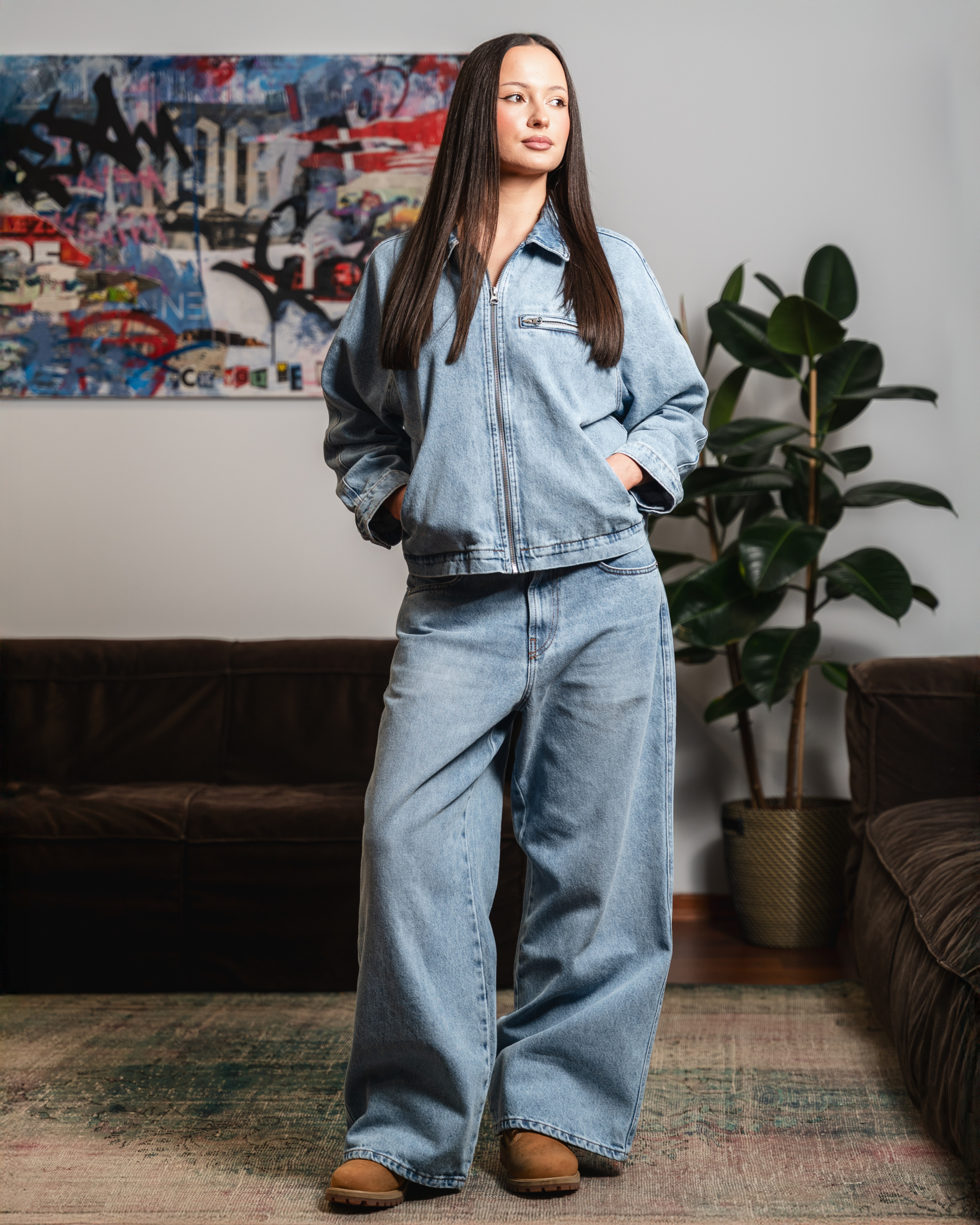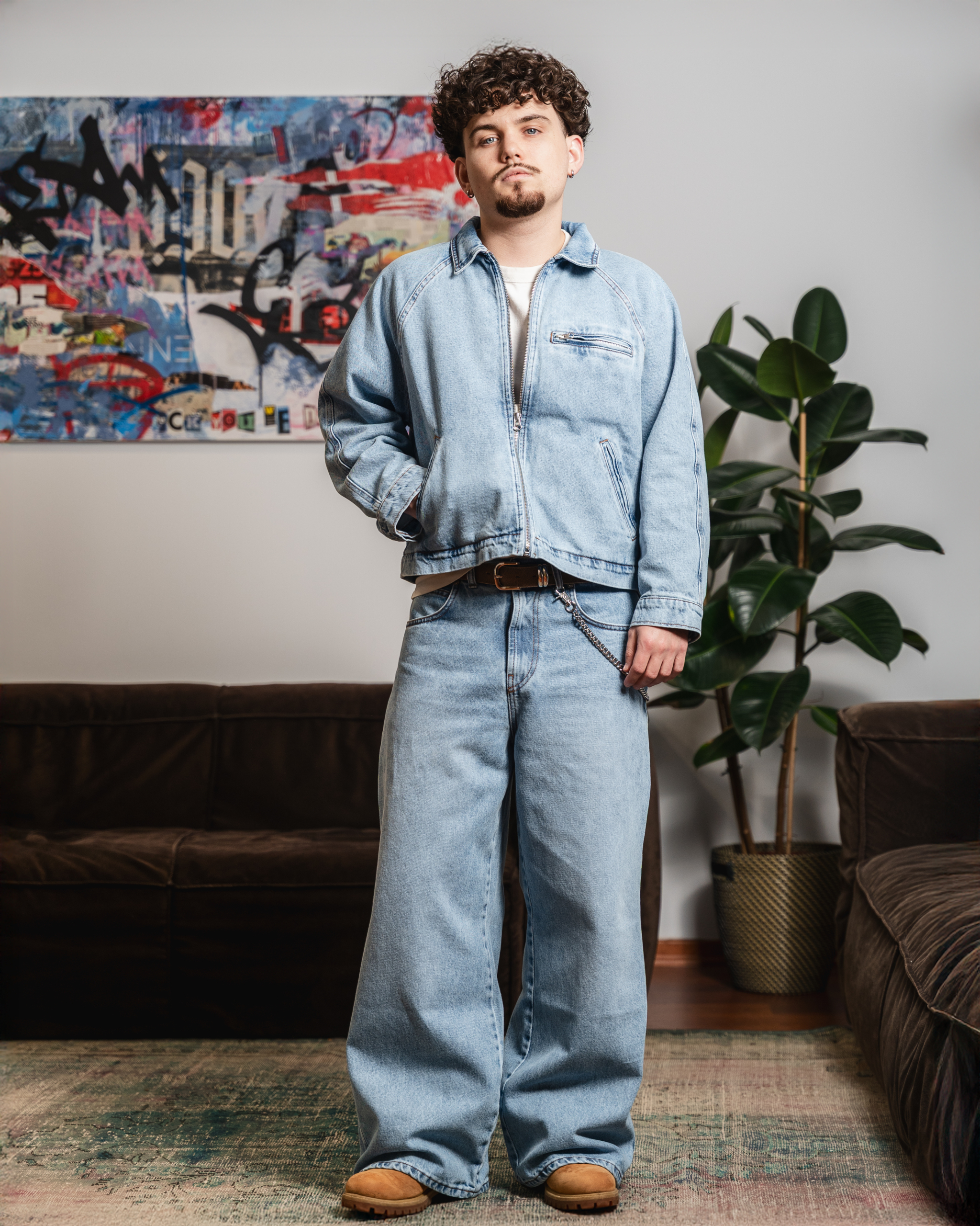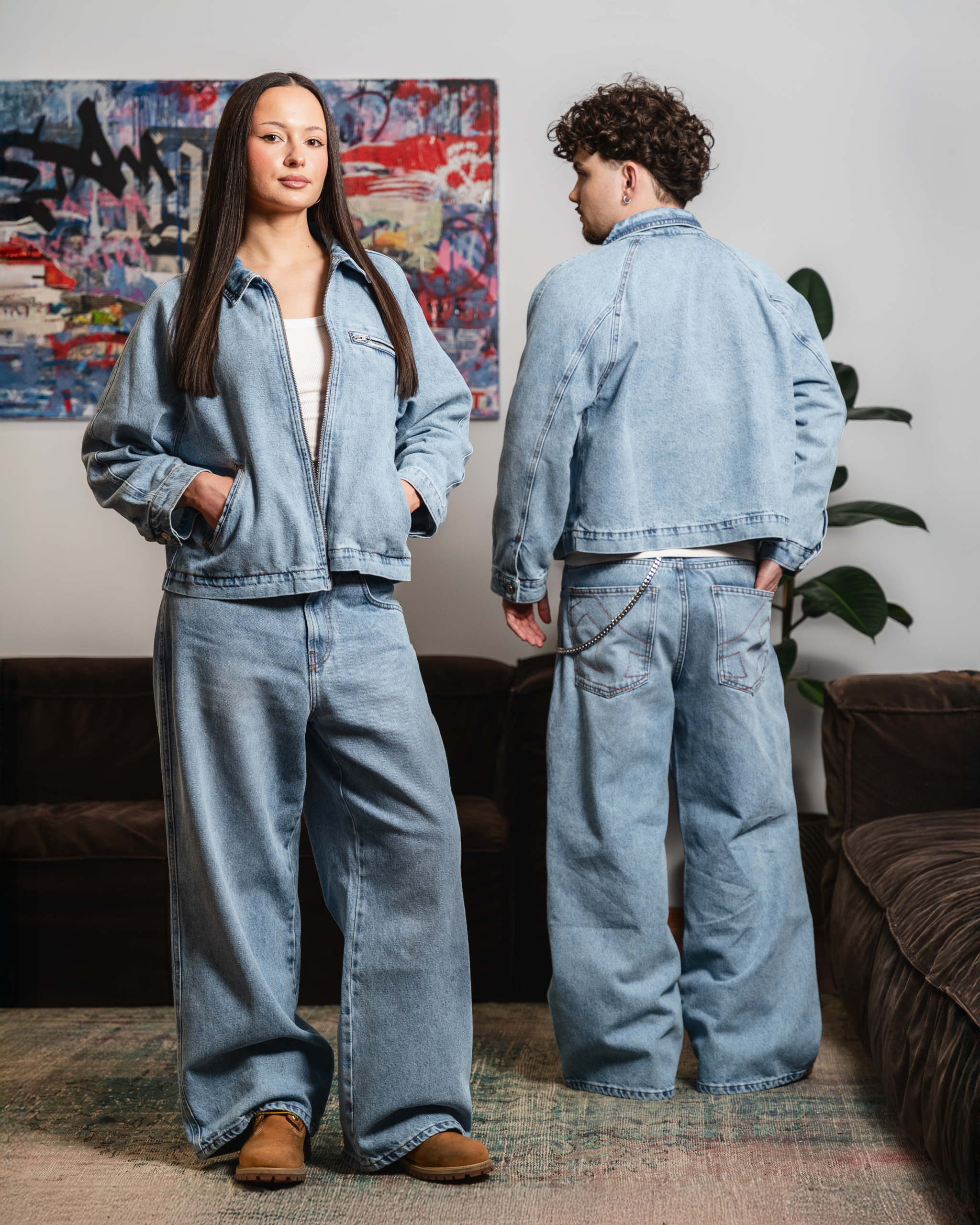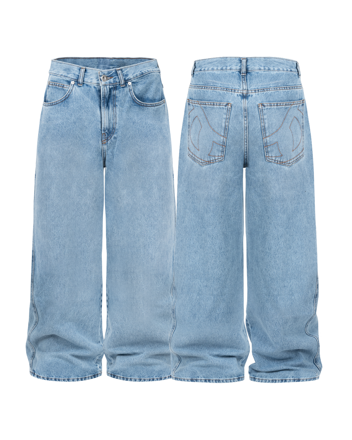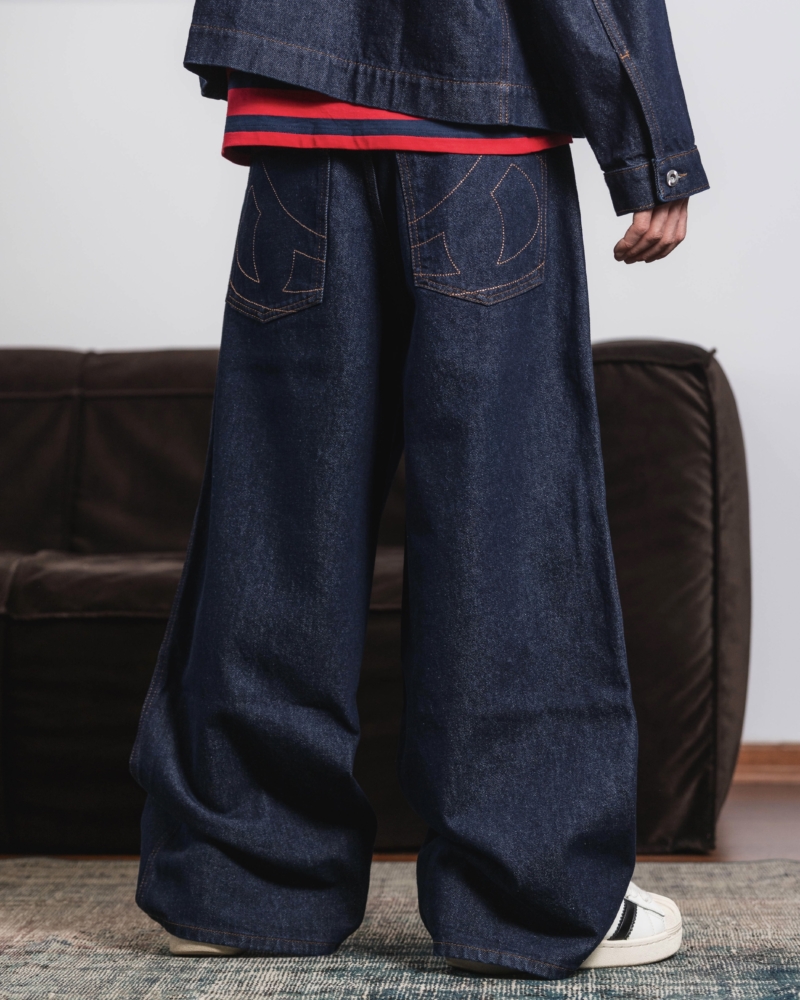 MAD BAGGY DENIM JEANS W KOLORYSTYCE WASHED BLUE.