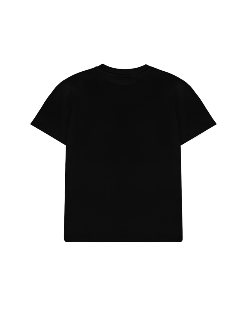 CZARNY T-SHIRT. KRÓJ BOXY. NADRUK NA PRZODZIE I PLECACH. 100% BAWEŁNA 280G/M2. MATERIAŁ Z CERTYFIKATEM OEKO-TEX. WYPRODUKOWANE W POLSCE.