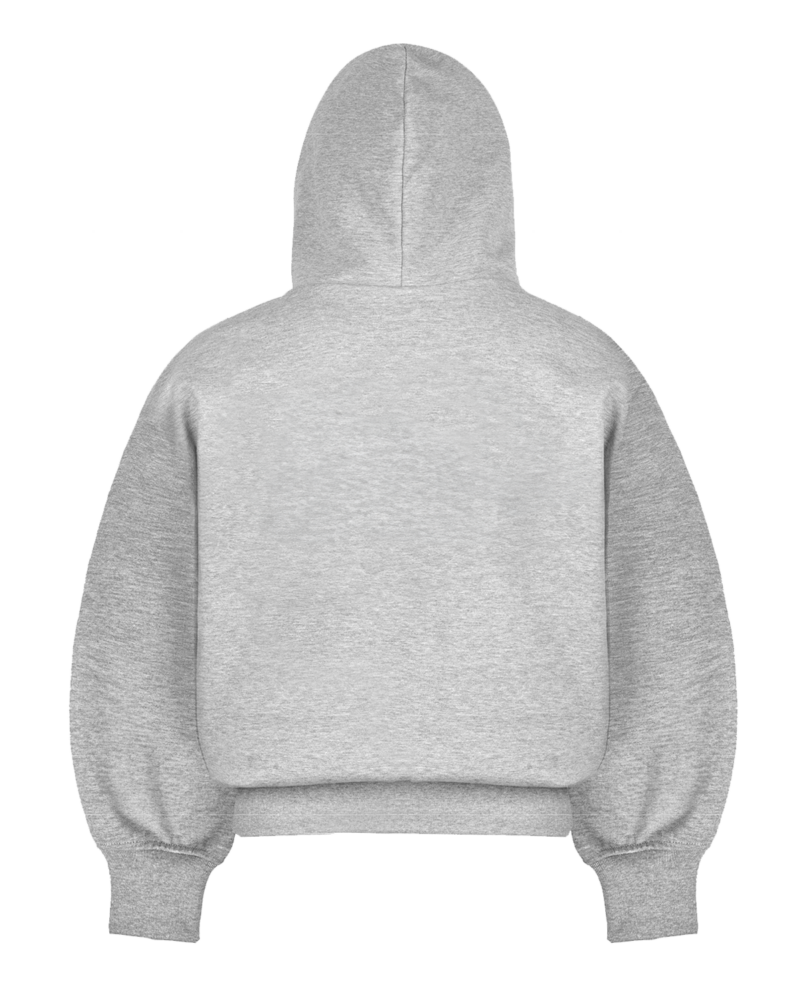SZARA BLUZA Z PODWÓJNYM SREBRNYM ZAMKIEM. KRÓJ BOXY. NADRUK NA PRZODZIE I PLECACH. 100% BAWEŁNA 420G/M2. MATERIAŁ Z CERTYFIKATEM OEKO-TEX. WYPRODUKOWANE W POLSCE.
