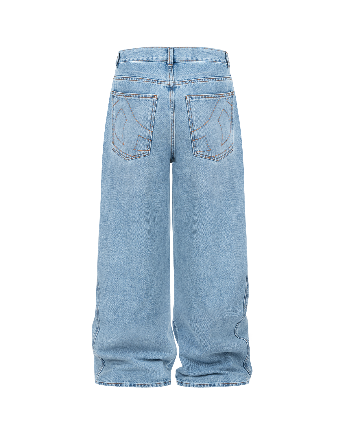 MAD BAGGY DENIM JEANS W KOLORYSTYCE WASHED BLUE.